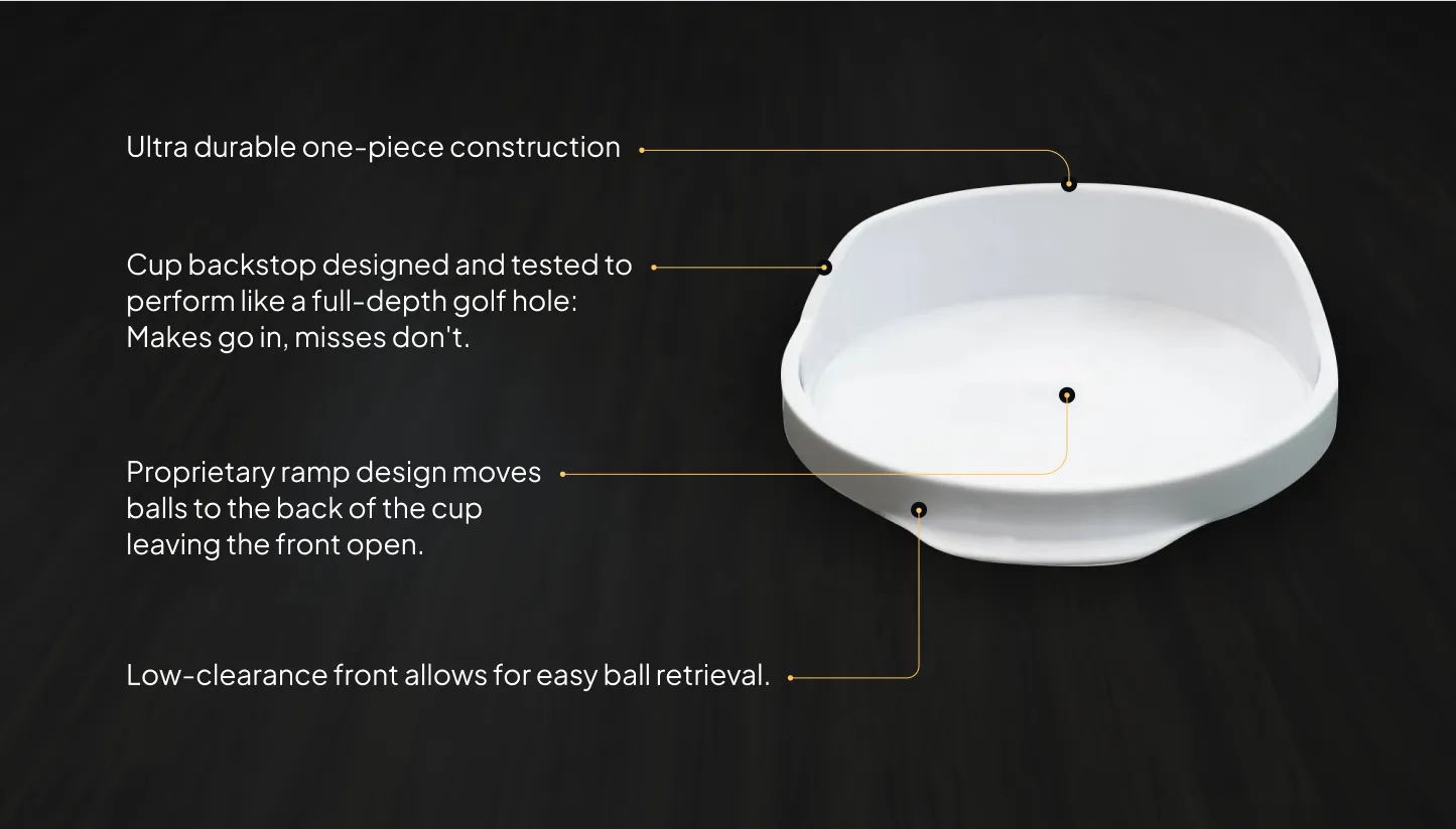 Our innovative cup design sets new standards for practice efficiency, accommodating multiple balls while maintaining the integrity of regulation-depth putting. The mat's specialized rubber backing and crease-resistant material ensure it lies perfectly flat immediately upon unrolling, while providing exceptional durability for both indoor and outdoor use.